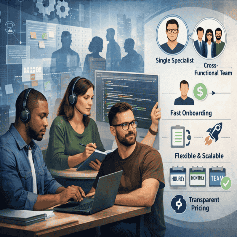 We help organizations scale their software teams and deliver reliable digital solutions through skilled professionals, structured execution, and transparent collaboration. Our approach focuses on quality, flexibility, and building lasting partnerships with our clients.